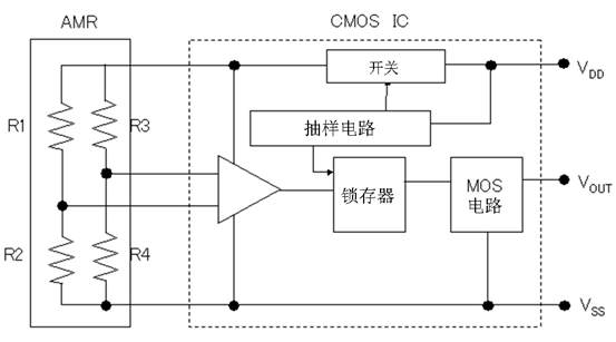 (*1)AMR(Anisotropic-Magneto-Resistance)各向异性磁阻效应。各向异性是指具有方向性,在这里是指可以检测出任意方向的磁力。