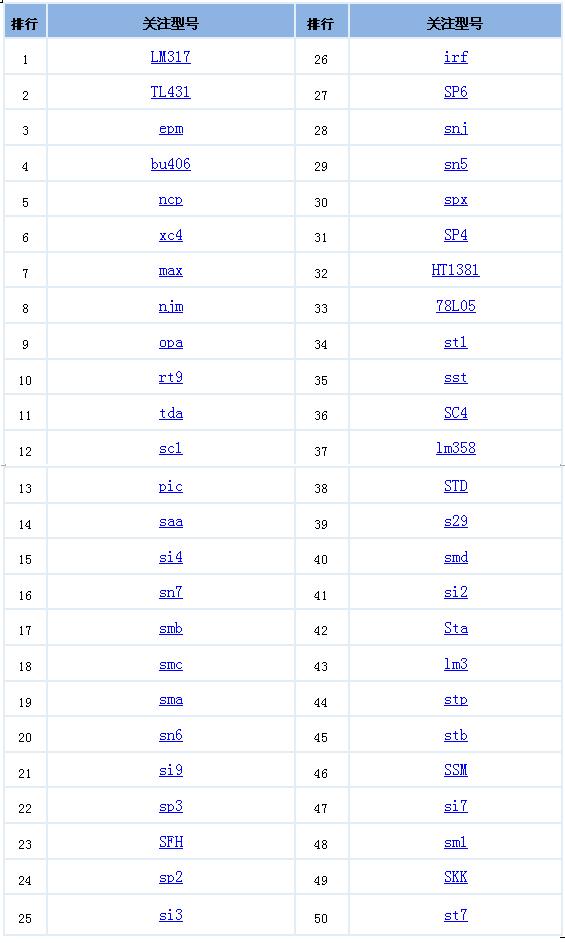 各位商户你们有福啦!从这月起,《华强电子》的小编们会定期从市场搜集热门型号和广大采购者经常询价的产品型号的前五十名,以供大家参考,如果我们的跑堂能给广大商家带来一点生意上的帮助,再辛苦也值得。如果您有这方面的需求或者建议,欢迎来电咨询。