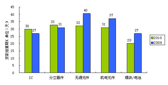 交货期、货款结算期、价格这三个要素在不同物料之间变化有所差异,原因在于不同的供应结构。IC、分立器件的供应体系中,国外厂商比例较大,供应相对集中,而且产能增加也比较保守,所以价格上涨最多、交期变长导致结算期也变长。而机电元件、???电池的供应中,国内厂商的比例很大,供应分散,随着2010年需求的增加,厂商产能提升很快,所以交期和结算期都变短了。无源元件供应结构介于中间,所以虽然无源元件的交期延长,但是货款结算期没有随之延长,反而缩短了,这主要因为是抢货。电子元件技术网的论坛里有很多关于缺货的讨论,有网友表示,因为缺货,甚至不得不由月结变成了现结来抢货。但是IC、分立器件由于货源吃紧,即使价格翻几倍也买不到。
