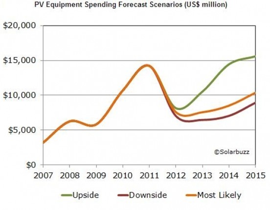Solarbuzz的高级分析师认为,2011年第二季度出现的光伏订单出货比低于常规的现象是市场的一个拐点,并强调了随之而来的2012年计划产能增长速度放缓的现象。分析师表示,这是自2009年第二季度以来光伏设备支出领域所出现的首次负增长。