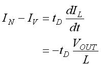 (3)式中的t是时间,而VOUT是电源转换器(如图1所示)的输出电压。当L减小时,便会相应减少。由于tD不会受ILS、L和VOUT影响,并且VOUT也不受L影响,所以IN会随着L而下降。这种关系可用下式表示: