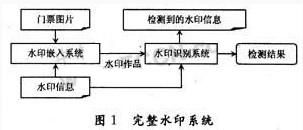 门票是观看奥运会、演唱会、参加高级会议的入场券。随着高质量图像输入输出设备的发展,特别是精度超过1200dpi的彩色喷墨、激光打印机和高精度彩色复印机的出现,门票的伪造变得更加容易。所以人们迫切需要一种有效的门票防伪及检测技术。传统的防伪技术,基本上都采用材料防伪,属于共性化防伪。如果被人仿冒,后果不堪设想,也存在造价高等缺点。而数字水印技术属于个性化防伪技术,它是与个性特征相结合,并且不改变成熟的印刷工艺,不改变印刷材料与设备,不增加印刷成本,是目前较好的防伪技术。