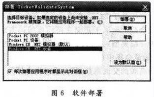 在Visual Studio 2003中进行软件设计,并在模拟器中调试成功之后,就可以将软件下载到实验平台中运行,在软件进行部署前安装ActiveSync 4.1,并在软件进行部署时选中“Windows CE.NET、设备”见图6。