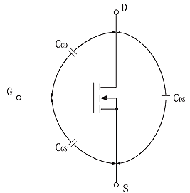 栅极驱动损耗是在开关管导通及关断瞬间,在一定的栅源电压VGS下,对MOSFET的极间电容(如图2所示)进行充电(建立VGS电压,使MOSFET导通)和放电(让VGS=0,使MOSFET关断)造成的损耗。此损耗与MOSFET的输入电容Ciss或反馈电容Crss、栅极驱动电压VGS及开关频率fsw成比例。要减小此损耗,就要选择Ciss或Crss小、阈值电压VGS(th)低的功率MOSFET。