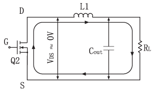同步整流管也是工作在开关状态(其开关频率与开关管相同),但因同步整流管工作于零电压(VGS≈0V)状态(如图3所示),其开关损耗可忽略不计。