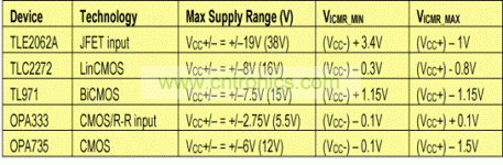 表 1 几种不同运算放大器的VICMR举例