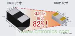 与以往的0603尺寸产品相比,尺寸成功减少了 82%(体积比)