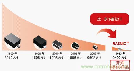 【导读】ROHM采用全新工艺方法,开发出超越微细化界限的世界最小元器件“RASMID™系列”,有助于移动设备进一步小型化。本文从ROHM的RASMID™系列的特点、二极管的小型化历史等方面进行介绍。