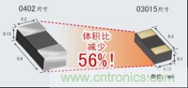 与以往的0402尺寸产品相比,尺寸成功减少了56%(体积比)