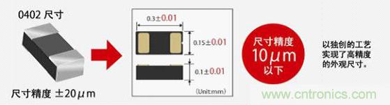 1.通过独创的工艺技术,实现了世界最小※的0402尺寸(0.4 mm×0.2 mm)