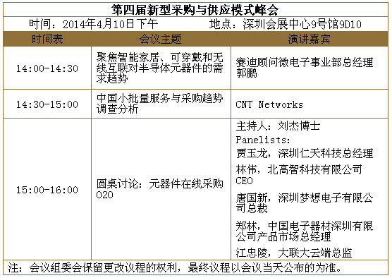 此次峰会旨在帮助供需双方的经理人了解热点市场带来的对半导体元器件的需求变化,中国小批量供应服务与采购趋势。圆桌讨论将针对采购和供应中的热点话题,中国电子分销商联盟秘书长刘杰博士与行业领先的国内和国际分销商总裁和总监们逐一分享思路,欢迎参与互动。参会可以通过网上或微信(关注我爱方案网),报名注册:www.5r3h.cn/seminar/95/agenda