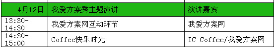 我爱方案网联手中国电子分销商联盟,中国电子展和电子元件技术网, 以激发设计灵感,力推中国原创为宗旨, 在2014中国电子展(中国电子信息博览会,4月10日-12日)期间推出六大热点活动,服务中国的原创设计,助力中国电子信息产业的腾飞!中国电子行业最具人气的交流创新平台IC咖啡为此次活动的支持单位?;队殖∨加鲋救?。