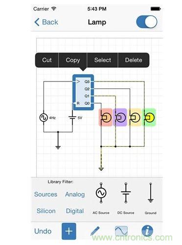 《电子电路仿真和设计 iCircuit》是首屈一指的电路设计和试验应用程序,功能非常强大,这是学生,业余爱好者和工程师的完美伴侣。其先进的模拟引擎可以处理模拟和数字电 路和实时分析的功能 。只要您会任何CAD程序,您就可以使用它:添加元素,它们连接在一起,并设置其属性,但iCircuit不像其他CAD程序,因为它始终是模拟。这就像 与实际电路的工作 。你不停止进行测量,或花很多时间配置。虽然这个只是玩玩,但他像真实的电路一样!有超过30种元件,你可以用它来构建电路。从简单的电阻,开关,晶体 管,数字门。您还可以模拟探头检测周围的电路,有即时读取电压和电流的万用表。如果你想看经过一段时间数值是如何变化的,那么你可以使用内置示波器。