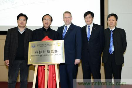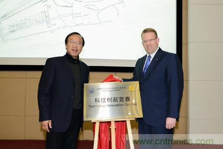图一从左至右:同济大学储志刚书记浩亭公司Edgar-Peter Duening先生与共同为竞赛的开幕揭牌