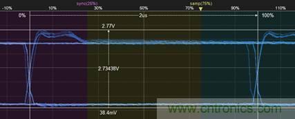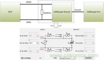 由此可见,该方法虽然可以大致测量出CAN节点的差分电平位信号特征,但由于其用于做分析的样本很少,测量方式有很难操作,所以为了提高测量结果的准确度,减低人工成本,文章中对测试方法进行了改进,使用CANScope-Pro总线分析仪、CANScope-StressZ扩展板,使用配套软件的样眼图与对称性测试进行测量。