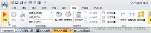2. 打开CANScope,在DUT正常发送报文后,如图 2点击启动,开启设备的眼图功能,获取到如图 3所示的眼图波形。