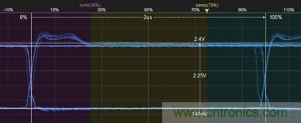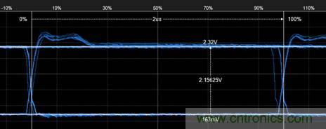 4. 然后再测量bit后半段的最大幅值,如图5所示,为2.25V。则2.25÷2.15=104%,符合GMW3122信号特征标准。