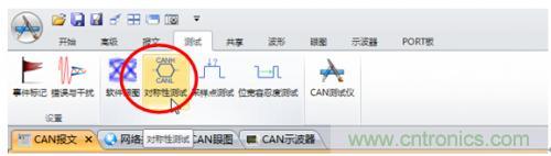 5. 为了精准测试CANH+CANL的电压值,需要使用对称性测试功能,如图6所示,在“测试”中点击启动“对称性测试”。