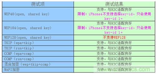从测试结果可以看出:除了WEP128,iPhone 4对各种加密方式均能很好的支持,在采用混合加密的H3C WLAN网络中也能很好的相互适配。