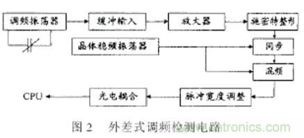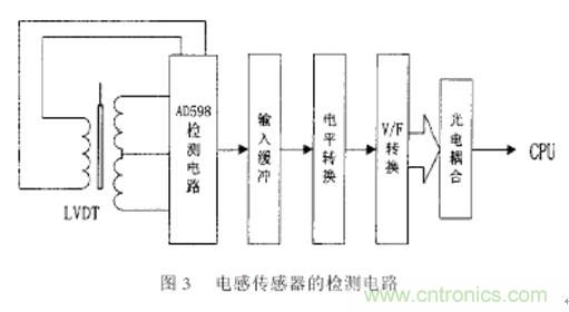 如图3所示,由于采用了最新的大规模集成电路,电感传感器的检测电路比较简单,且集成电路采用了新的调制解调方法和算法,减少了以前的检测外差式调频检测电路方法由于传感器的激励信号的相角、频率以及幅值漂移对检测结果的影响,大大进步了检测精度和稳定性。