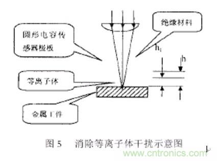 等离子体对电容传感器的干扰是由于等离子体改变了电容两极板之间的介质。因此,为了消除等离子体对电容传感器的干扰,就要使电容两极板之间的介质不受等离子体的影响,可以加大圆环形极板的中心小孔和将电容传感器移至等离子云以外两种方法来实现。