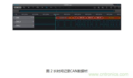 记录模式非常适用于低速串行协议分析,如CAN、LIN、FlexRay、SPI、IIC、UART等。不间断长时间的记录,确保了数据帧的完整性,排查偶发异常故障非常有用。