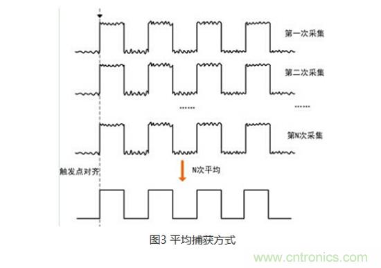 第三个就是平均捕获模式了,这个名字也非常容易理解,就是采集N屏信号,将它们在触发位置对其,然后做平均运算。