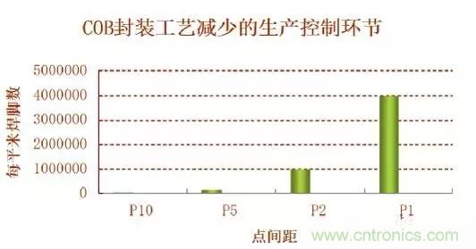COB封装工艺整合了LED显示产业链的中、下游企业的生产流程,在一个企业内部就可完成从LED灯珠的封装到LED显示屏的制作过程,节约了生产组织成本,中间环节的包装和物流成本、质量控制成本等。