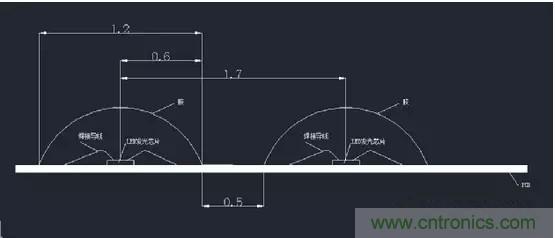 从物理空间尺寸来看,COB封装在设计灯珠直径时不再受制于支架尺寸的限制,如下图所示: