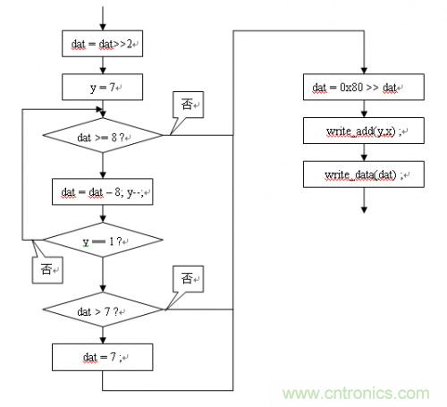 LCD的纵向分为8个地址从上到下依次为0~7,每个地址段有8个数据点。在某个数据段中如果想依次让这些位从上到下点亮就需要依次向这个地址段送数据0x01,0x02,0x04,0x08,0x10,0x20,0x40,0x80,送入0x00后这个地址段的8个数据点将不被点亮。实现的具体过程如图4所示。