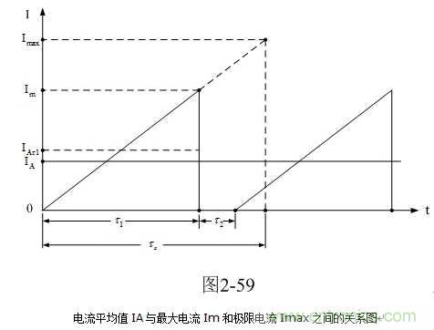这里顺便介绍一下电流平均值IA的求法,以及其与最大电流Im和极限电流Imax的关系。图2-59是电流平均值IA与最大电流Im和极限电流Imax之间的关系图。