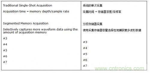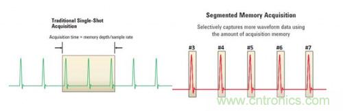 示波器和数字化仪通常都支持分段存储器技术。有了分段存储器,您可以使用触发或选通来选择性地捕获波形数据,从而减少所需的采集存储器容量。