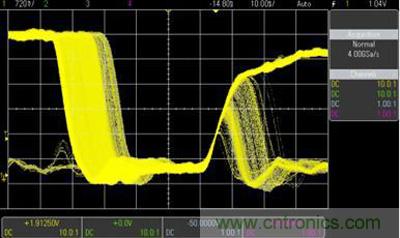 图 4. 示波器具有超过每秒 1,000,000 个波形的更新速率,让用户可以看到意外事件和毛刺。