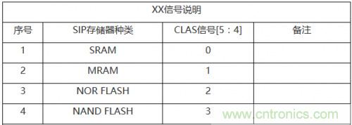 每一种SIP存储器对应于一个特定的ABUS接口IP核,以实现正确的时序读写操作。这个IP核有一个统一的接口约定,都是由两个固定的接口构成,其中与NIOSII连接的是外部总线接口,其操作按照NIOSII的外部总线时序规范来实现,另一个接口就是上文提及的ABUS接口,在相应的CLAS信号有效的情况下,它负责把NIOSII的外部总线读写时序转换成对应存储器芯片的时序。IP核的工作就是完成这些读写操作的转换。表5是各种SIP存储器对应的类别信(CLAS)号输入值,在设计接口转接板时要按这个值设定,ABUS才会切换出正确的读写时序。