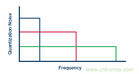 图 1 显示了不同采样频率下的量化噪声密度示例。