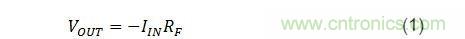 互阻抗放大器是一种通用运算放大器,其输出电压取决于输入电流和反馈电阻: