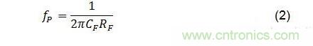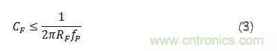 高于该极点频率,电路的放大率便会降低。最大反馈电容器值可由反馈电阻器和所需带宽确定: