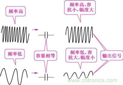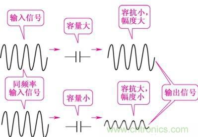 式中:π为常数;f为交流信号的频率,单位为Hz(赫兹);C为电容器的容量,单位为F(法拉)。