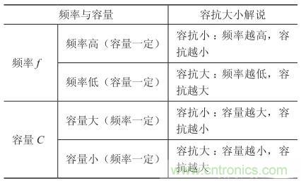 表1-2给出了容抗、频率、容量三者之间关系的小结。
