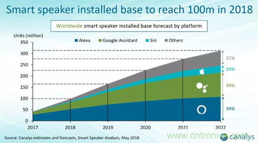 自亚马逊在2014年底发布了其第一款智能音箱Echo后,全球、尤其是国内掀起了一股狂热的智能音箱潮,据不完全统计,截止到今年三月,中国大陆有近百家厂商进入智能音箱市场。分析机构Canalys最近报告指出,预计今年全球智能音箱的保有量突破一亿部,到2020年这个数字将会上升到2.25亿智能音箱厂商竞争,其实是智能家居生态入口的竞争。