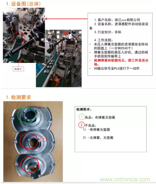 【导读】以下是一组工业视觉图,一起看看滤清器自动组装设备是如何在生产中不良品的自动检测的。