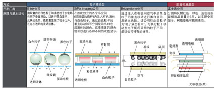 表1 已进入实用化阶段的主要电子纸技术的比较