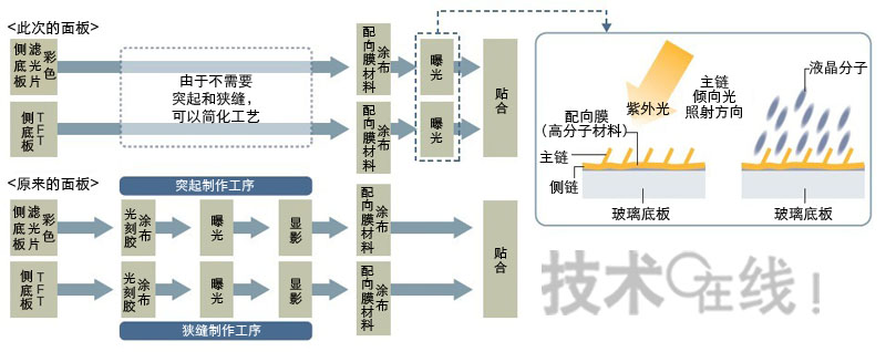 需代之以向配向膜照射紫外光的工序。(图根据夏普的资料制成)