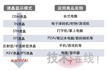 液晶显示模式每进一步,都会创造出新应用商品。UV2A是夏普创造的词,意思是使用UV的VA。(图:本站根据夏普的资料制成)