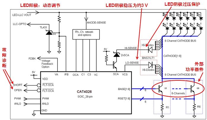 图6.基于安森美半导体CAT4026的大尺寸LED背光液晶电视多通道线性侧光方案