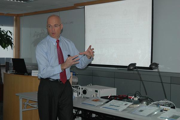 图1. LED 通用照明及电源营销和系统工程总监Laurent Jenck为媒体讲解