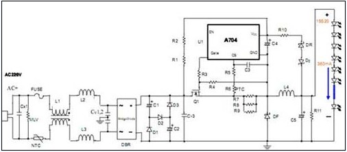 5、A704的LED日光应用方案比较成熟可靠,我们可提供LED日光灯可过EMC测试的PCB线路及BOM表参考,提高客户设计开发产品的速度!