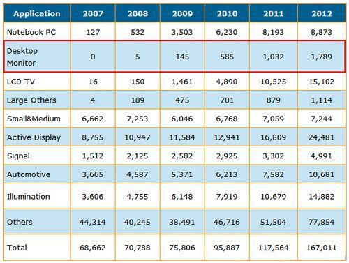- 2012年估计LED背光将被广泛地应用在1寸到70寸液晶显示设备