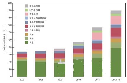 随着消费者环保意识的提高,液晶电视与照明等各种用途的LED应用在逐渐增加。预计2010年市场增长最快的,将是用于液晶电视、LCD显示器与笔记型电脑用LED背照灯(注1)。