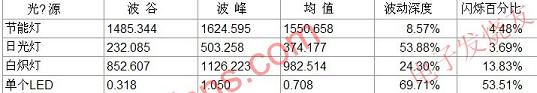 表1各种光源闪烁参数